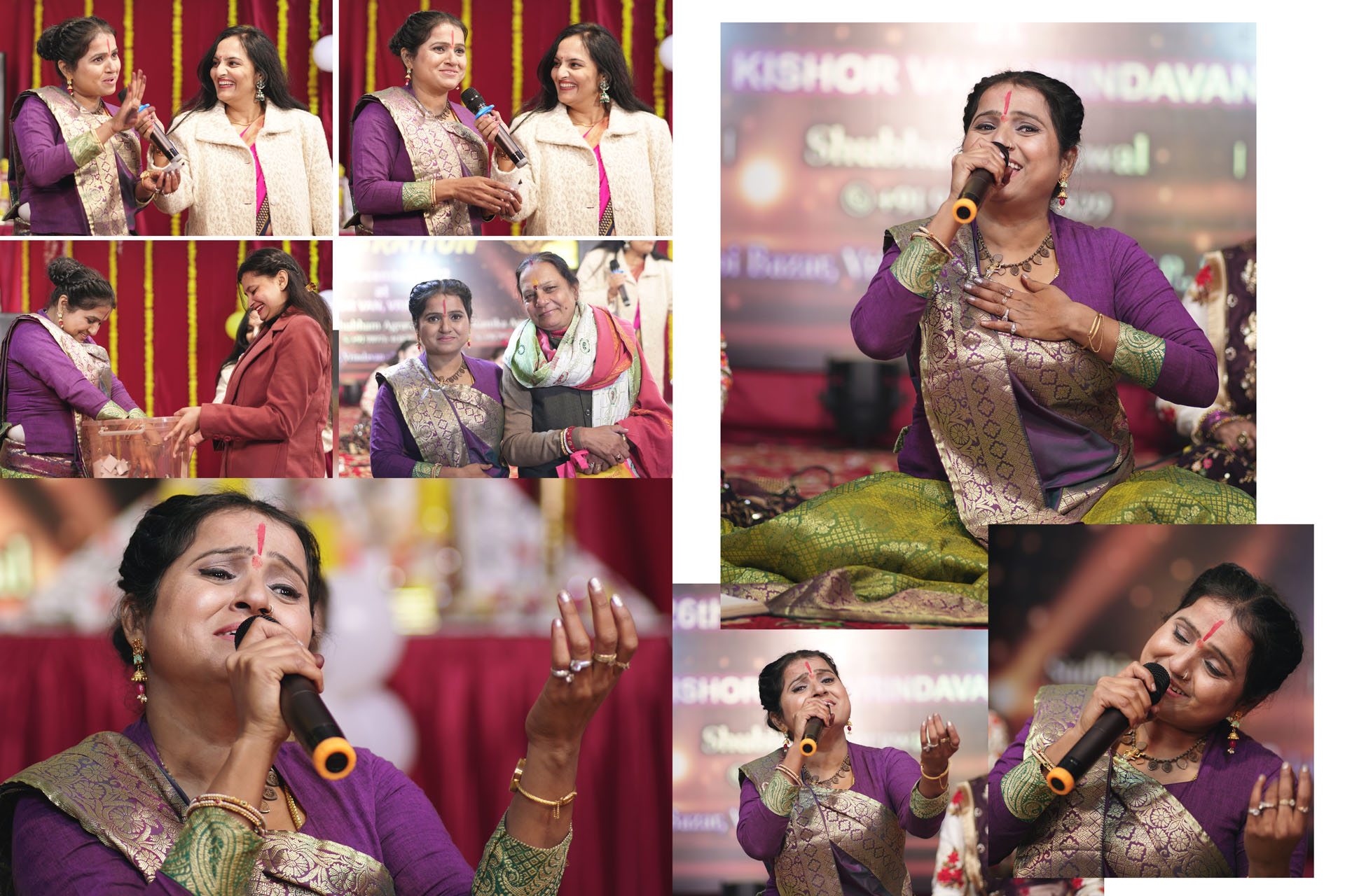 Vandna Shri has involved the whole audience or the spectator to be involved with her during her singing / shree krishna leela / katha (Shrimad Devi Bhagawat Puraan, Nani Bai Ka Mayra)...